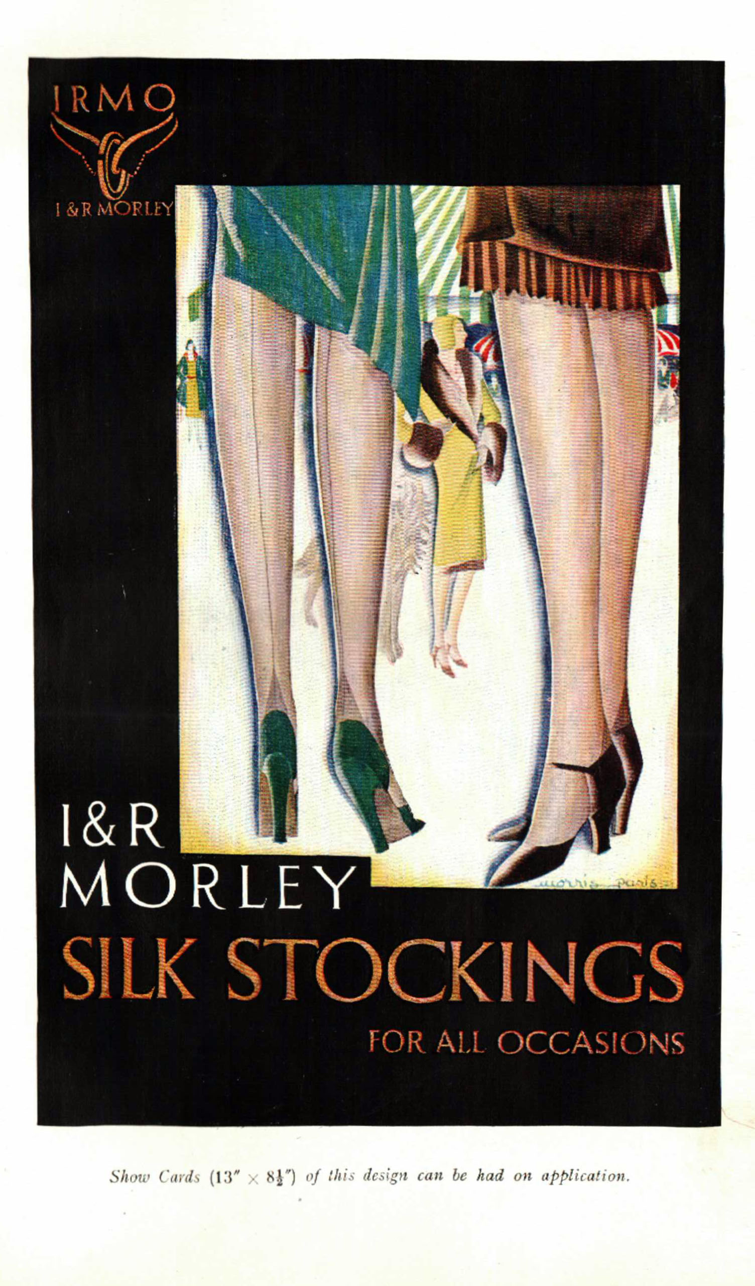 "IRMO Silk Stockings" showcard, I & R Morley's Catalogue Spring 1930.